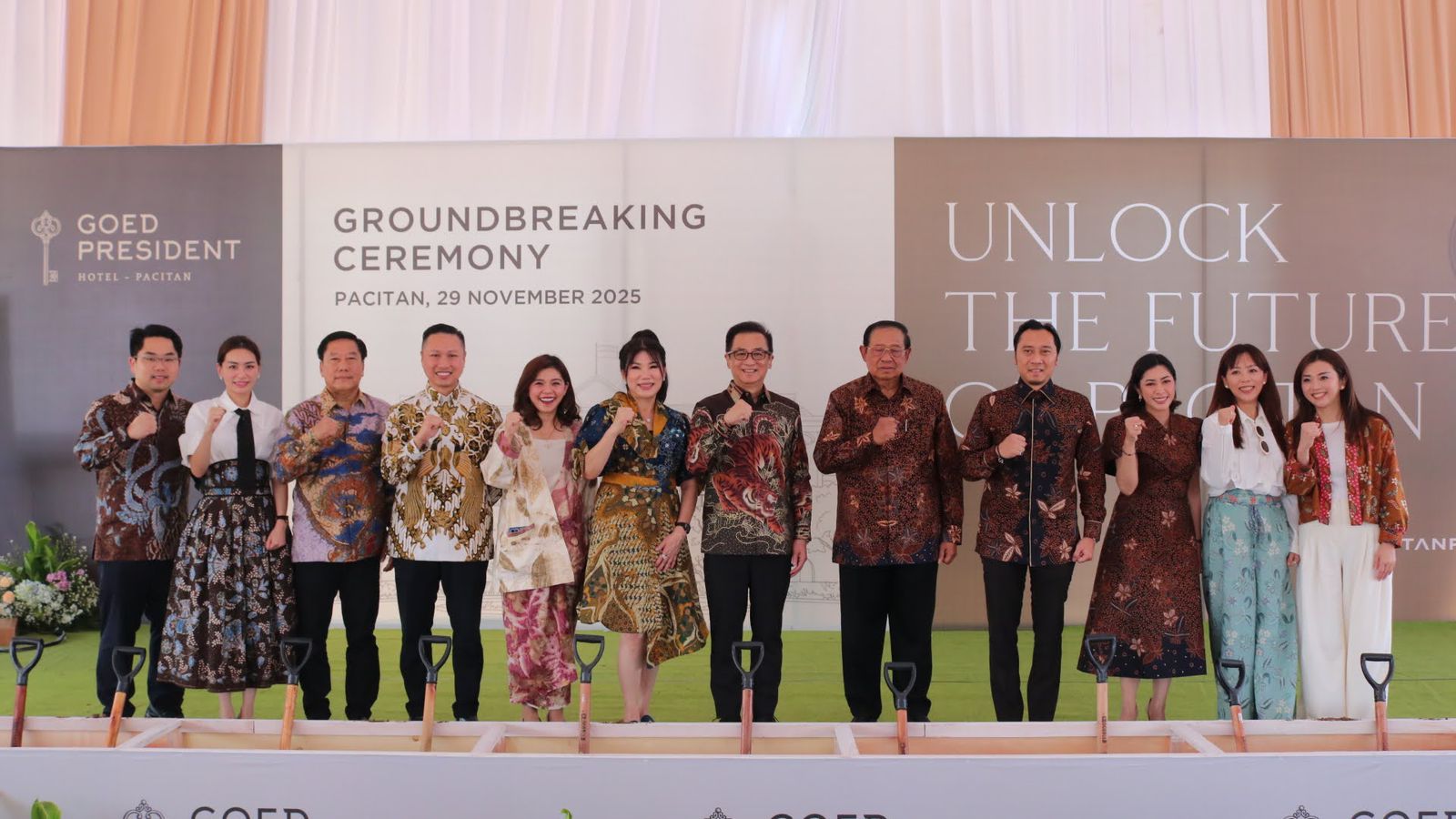 Pacitan, Jawa Timur, 29 November 2025 Peletakan batu pertama Goed President Hotel Pacitan resmi dilaksanakan di atas lahan lebih dari 1,1 hektare. Proyek ini digagas dan didirikan oleh Presiden Republik Indonesia ke-6, Prof. Dr. Susilo Bambang Yudhoyono (SBY), bersama pengusaha nasional Hermanto Tanoko. Kehadiran hotel butik berbintang dan berkelas internasional ini menegaskan komitmen untuk menghadirkan keanggunan yang berakar pada kearifan lokal, sekaligus membuka babak baru bagi destinasi unggulan di pesisir selatan Jawa.