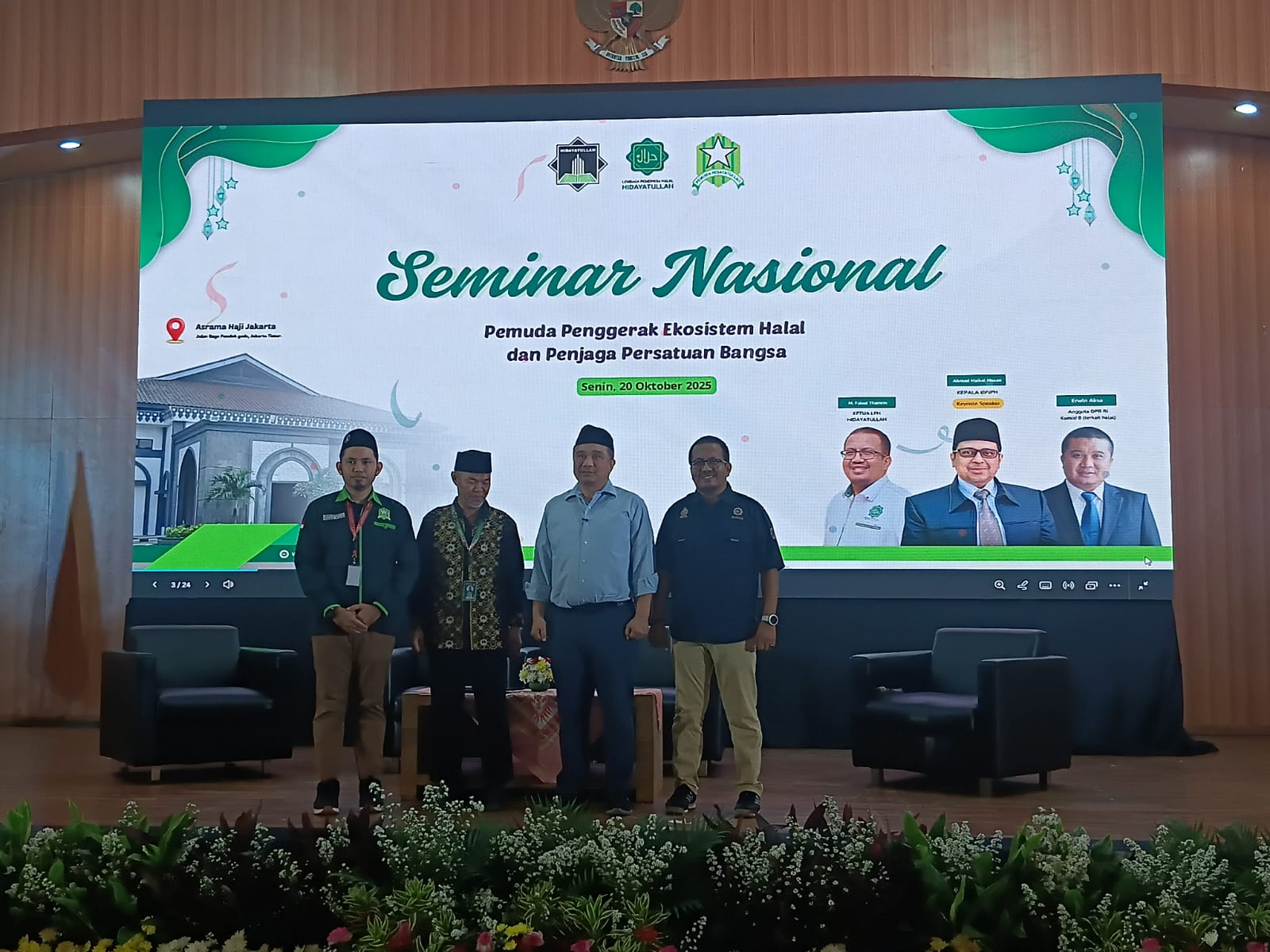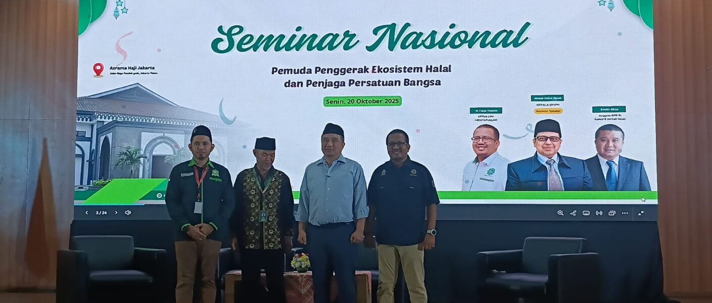 Jakarta, Dalam upaya memperkuat ekonomi halal sekaligus menjaga semangat persatuan bangsa, digelar Seminar Nasional bertema “Pemuda Penggerak Ekosistem Halal Penjaga Persatuan Bangsa”. Yang dilaksanakan di Asrama Haji Pondok Gedek pada Senen 20 oktober 2025.