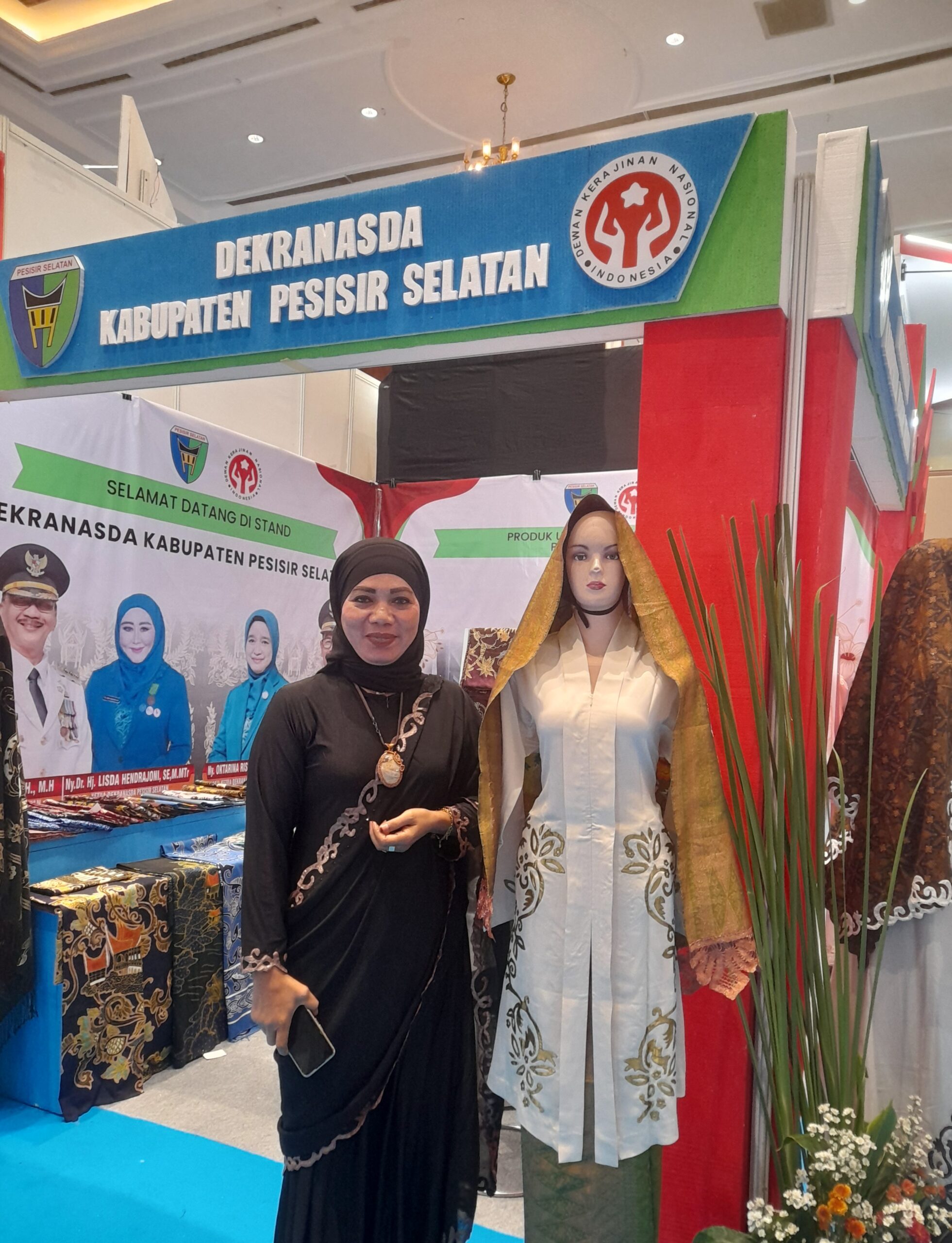 Salah satunya adalah Dekranasda Kabupaten Pesisir Selatan dengan menampilkan produk unggulannya adalah “Sulaman Bayangan Kaligrafi Rozalinda”, dari daerah Barung2 Belantai Pesisir Selatan.